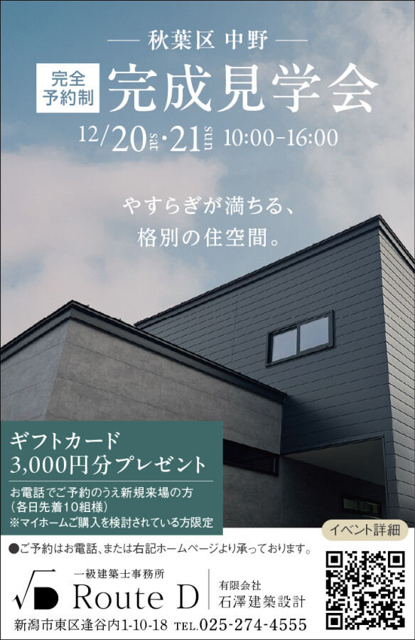 【ギフトカードプレゼント】12月20日(土),21日(日)新潟市秋葉区中野オープンハウス開催